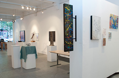 Persimmon Blackbridge's politics have fostered her fearless, innovative art, with her being described provocatively as, “learning-disabled - lesbian - cleaning-lady - sculptor - performer – madwoman”. Susanna Blunt is a painter and sculptor who creates new hybrid forms that defy recognition. Olga Campbell is an interdisciplinary artist whose sculptures and photographs deconstruct the border between inside and outside. Eric Deis is a large-scale photographer whose works capture the stark realism often implicit in a marginal social world. Bernadine Fox uses her mixed media paintings to invite the viewer into her personal world where she deconstructs and de-stigmatizes mental conditions. Eve Lagarde uses words in artist books to bridge poetically the coldness of clinical diagnosis with humanity. Mark Mizgala plays on notions of identity and stereotyping of personalities within a conceptual art framework. Jay Peachy is an interdisciplinary artist and mental health activist who conceptualizes with humour to heal and dispel our prejudices. Matt Sabourin re-appropriates and subverts everyday objects by injecting new meaning onto them. Linda Schmidt is a sculptor whose works invites people to be aware of fitting into predefined spaces.