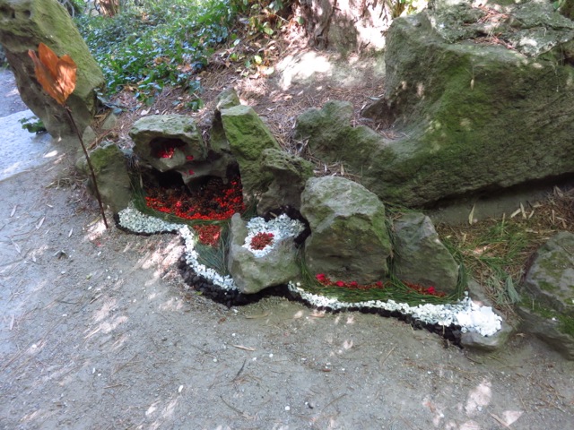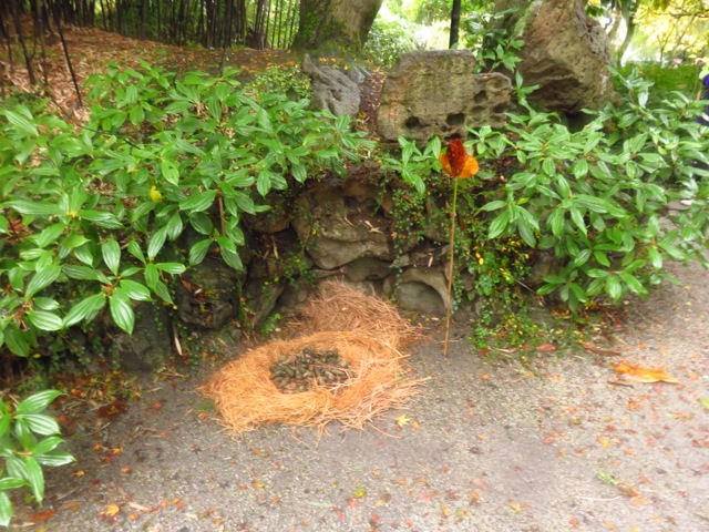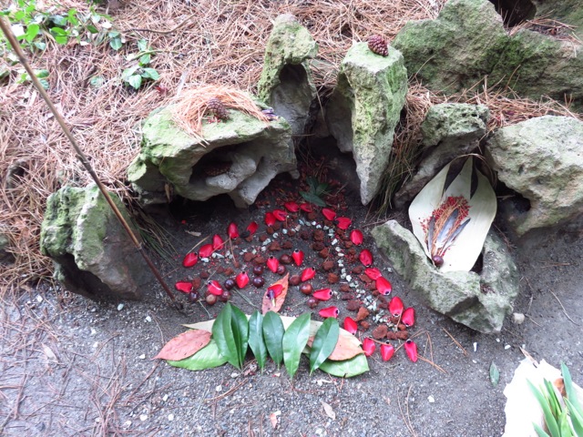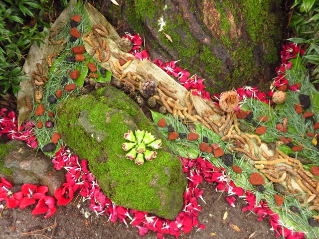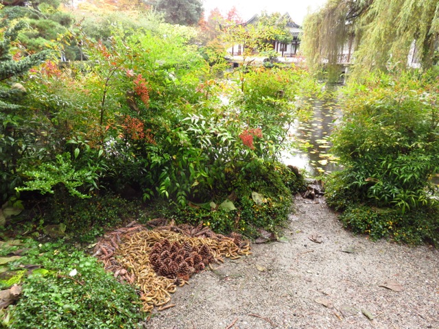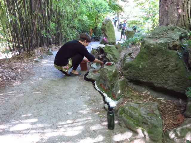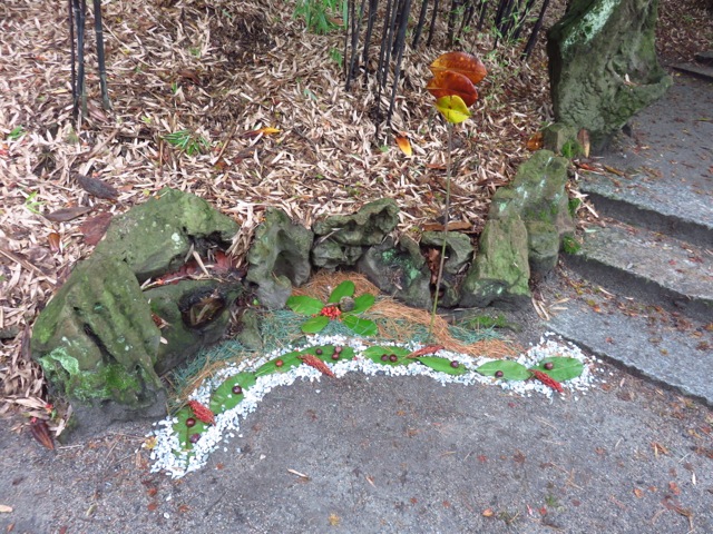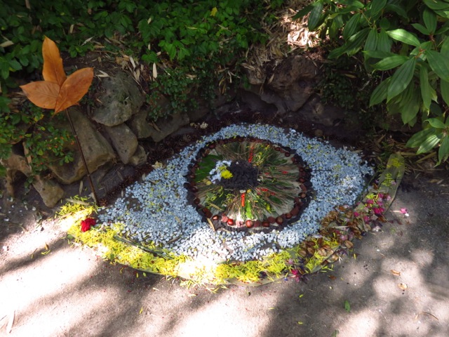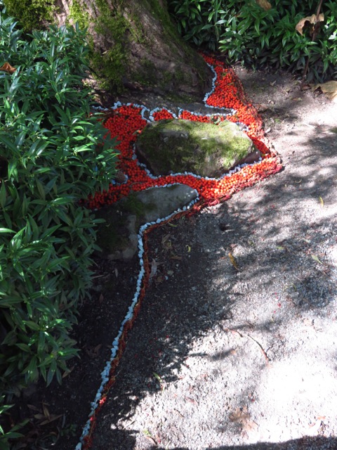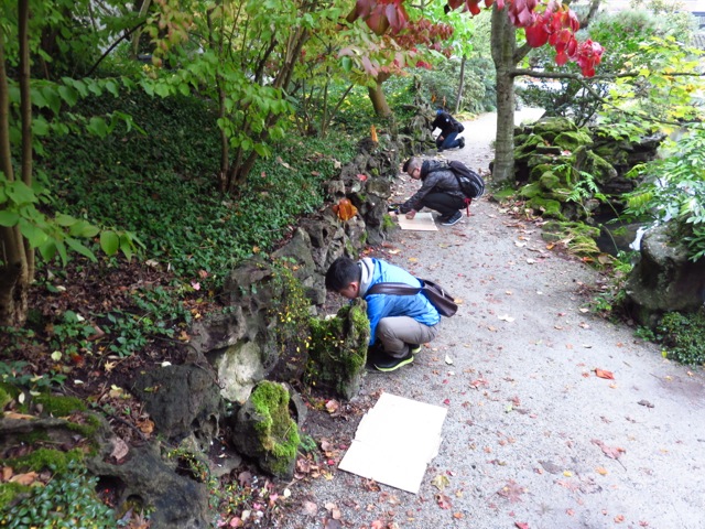 My project was called Slowing Space. We move faster and faster within our environment and slowing down is equated to laziness. As we move faster our awareness of space also shrinks. Slowing down is a way to stretching time and space. Thus, the goal of this project was to increase the size of the garden by creating surprises that will slow the traveler. Along the paths in the garden, community participants drew lines with materials from the earth to make previously invisible spaces more visible. Participants from the community had the opportunity to create their own small environmental art installation in one of several designated areas along the pathways of Sun Yat-Sen park. They first experimented using natural materials to draw contour lines during a workshop on site. After choosing their materials, they invested the area they chose. Three workshops were held one month apart to reinvest the areas with new works. Information about the workshops was available through the website and social media.