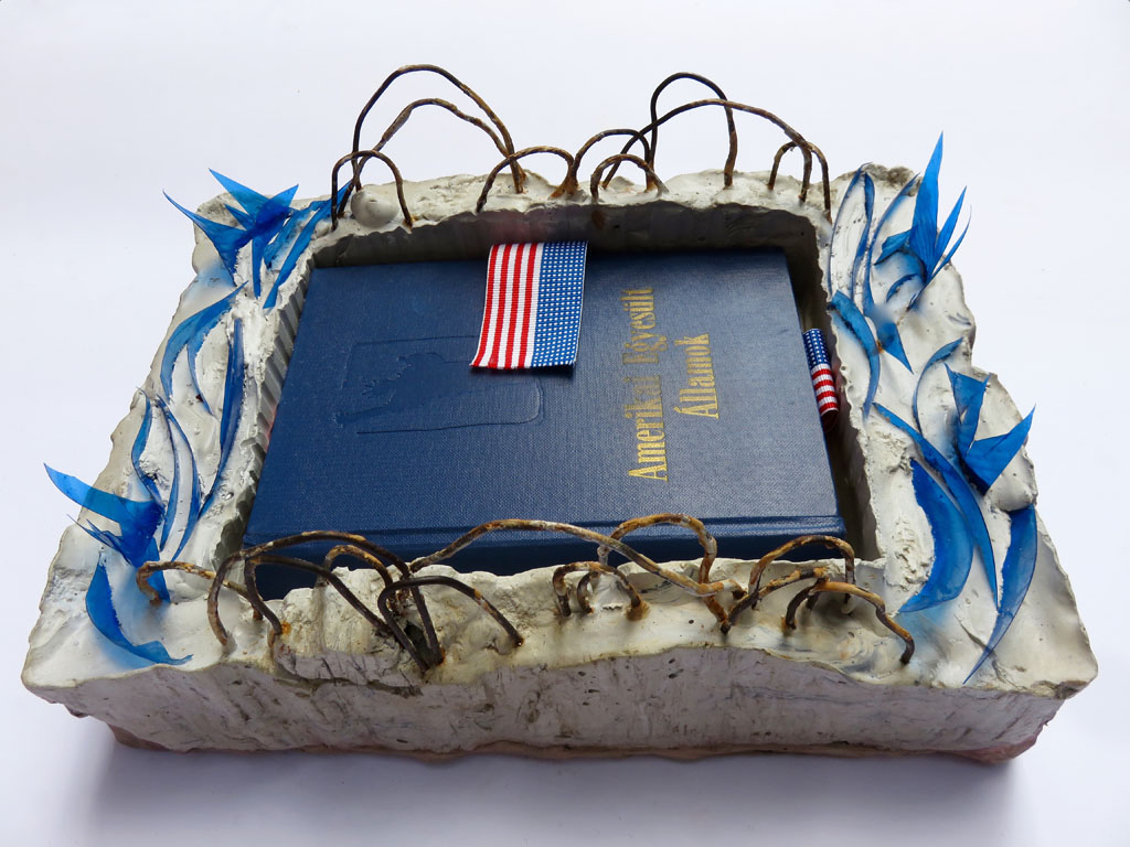 For Ket ocean kozott (between two oceans in Hungarian) I built an wall like enclosure for the travel guide book of the United States in which I carved out the Grand Canyon – the iconic great divide shaped by time and nature.