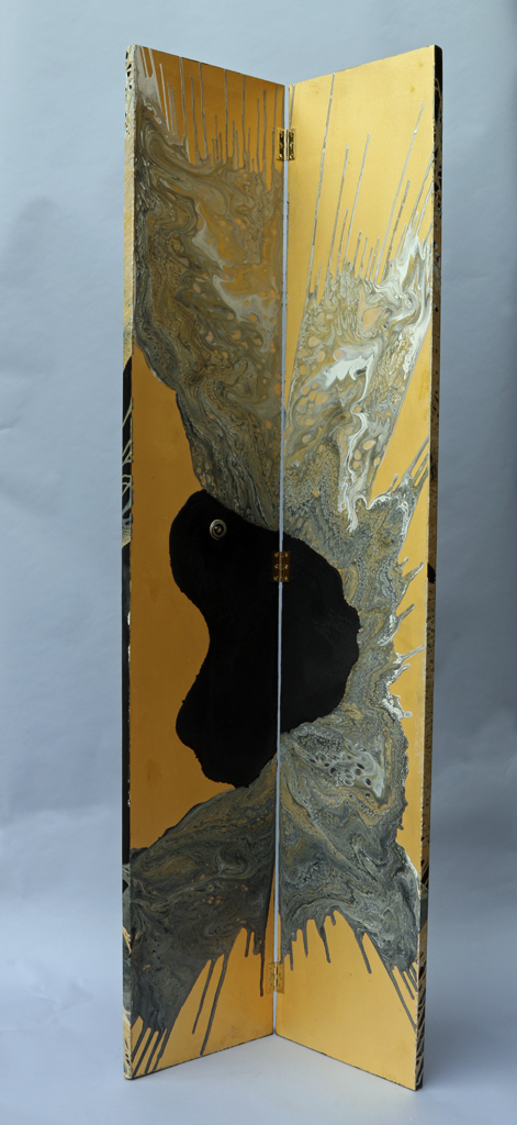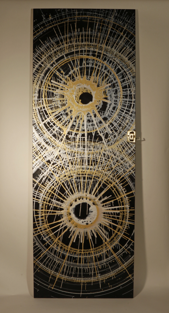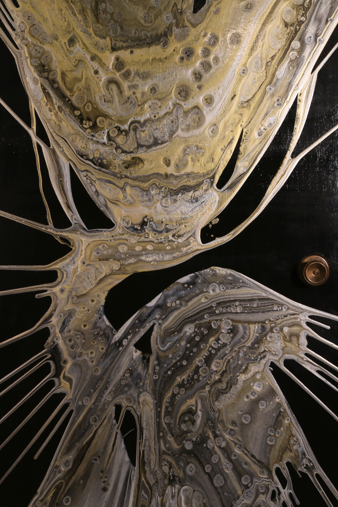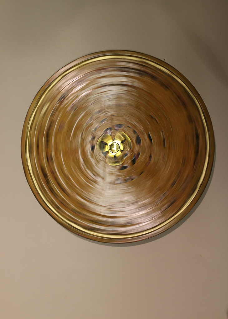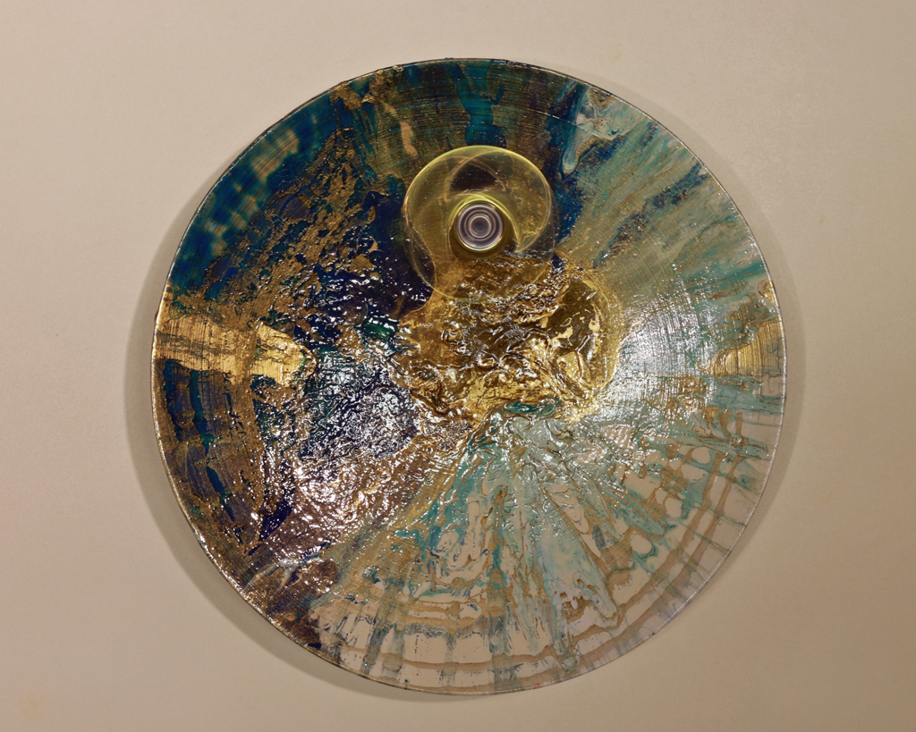 FEELING THE PULL A new spin on gravitational art Gravity is a fundamental force for our existence. Yet it’s very essence remains a mystery. Ripples in the fabric of space and time –gravitational waves – were first detected in 2015. They arise from the collision of extraordinarily large objects such as black holes and neutron stars colliding. These collisions generate heavy elements such as gold, platinum and lead. Many astrophysicists equate this discovery to that made by Galileo when he provided the evidence that the earth revolved around the sun. Gravitational waves could open doors to a deeper understanding of our universe, even possibly its very origin. In this ongoing work, the force of gravity is explored artistically. These mixed media works aim to engage viewers visually and physically in the experience. The works are of course imaginative representations as we only have limited knowledge of these events, however, each of the works was made using gravitational force directly and some can be activated by it. The concave works can be installed vertically or horizontally and viewers can spin them. |