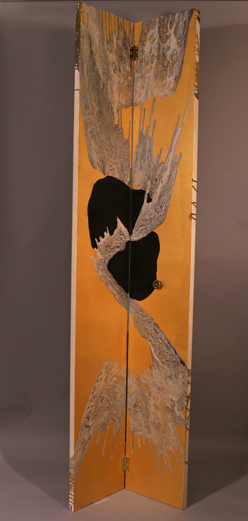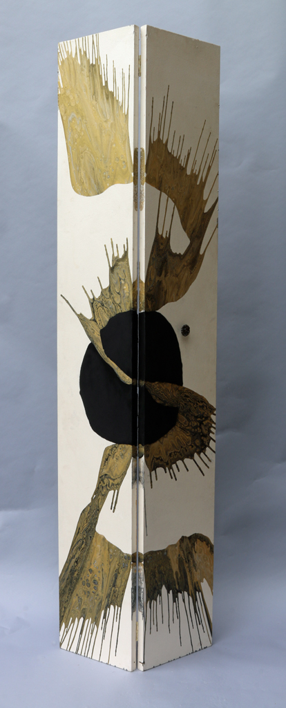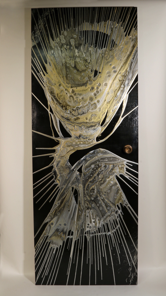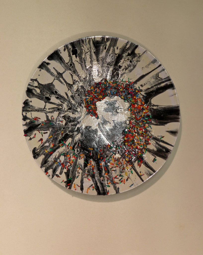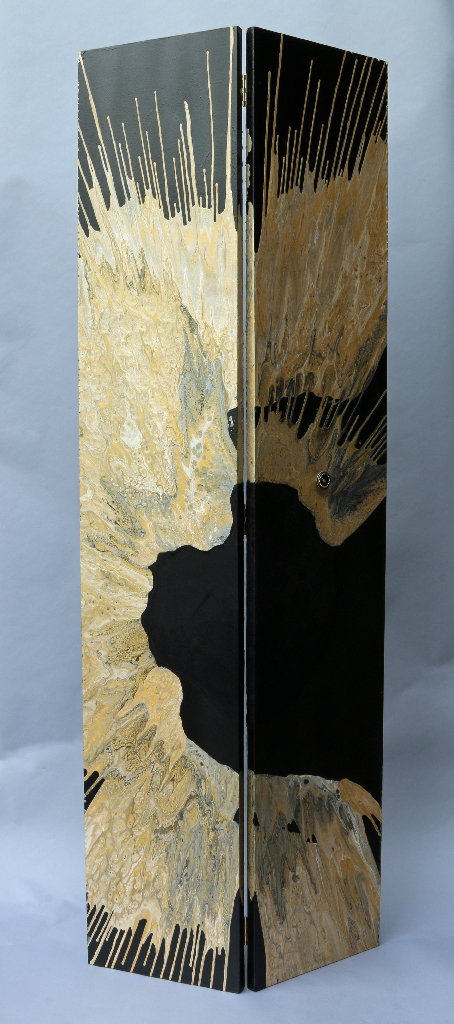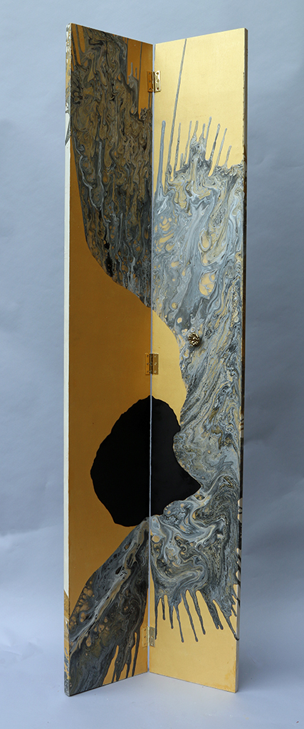 FEELING THE PULL A new spin on gravitational art Gravity is a fundamental force for our existence. Yet it’s very essence remains a mystery. Ripples in the fabric of space and time –gravitational waves – were first detected in 2015. They arise from the collision of extraordinarily large objects such as black holes and neutron stars colliding. These collisions generate heavy elements such as gold, platinum and lead. Many astrophysicists equate this discovery to that made by Galileo when he provided the evidence that the earth revolved around the sun. Gravitational waves could open doors to a deeper understanding of our universe, even possibly its very origin. In this ongoing work, the force of gravity is explored artistically. These mixed media works aim to engage viewers visually and physically in the experience. The works are of course imaginative representations as we only have limited knowledge of these events, however, each of the works was made using gravitational force directly and some can be activated by it. The concave works can be installed vertically or horizontally and viewers can spin them. |