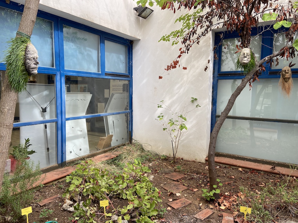 in the entrance and courtyard of the Koutavos Environmental Center.